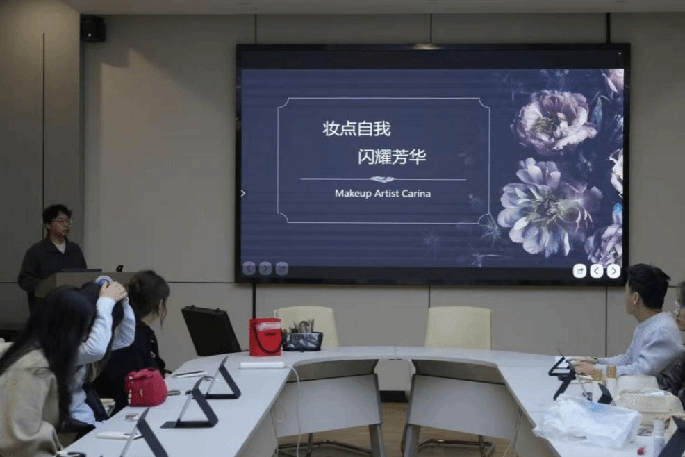 楼204会议室举办“内外兼修·美丽绽放华”系列活动。活动特邀专业化妆师吉俊莹,以“妆点自我·闪耀芳华”为题等进行面部美学、化妆技巧等分享,吸引了30余名学生参加。
