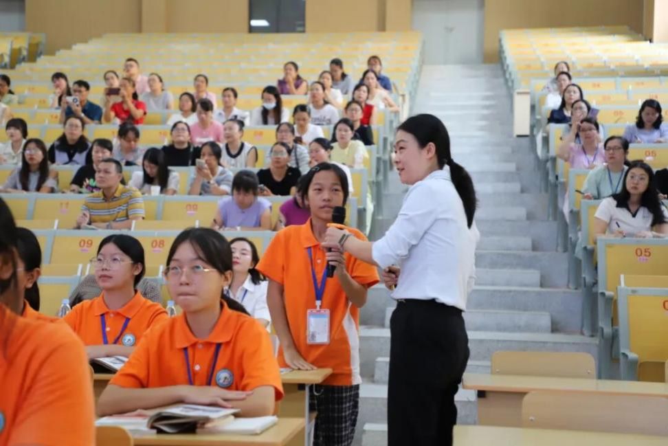 我院高絜老师在思源实验学校面向融水县初中英语骨干教师开展了八年级英语教学示范课,聚焦新课标理念下的课堂教学实践开展了解读指导。杨惠英老师带来《AI技术在英语教学中的应用探索》专题讲座,详细讲解了AI技术从应用选择到课堂场景的深度融合,为融水初中语教师开拓了“AI+英语教学”的创新思路。帮扶团队与融水英语学科中心组成员、各学校备课组长与骨干教师围绕“英语课堂效率提升”“AI技术在初中英语课程中的应用”等议题深入交流,我院教师围绕英语新课标的语言能力、文化意识、思维品质、学习能力四大核心素养培养,提出了具体可操作的建议,助力当地教师突破“理念认知”与“课堂落地”的衔接难题,将核心素养培育真正融入课堂教学的目标设定、活动设计、互动引导、评价反馈等具体环节。