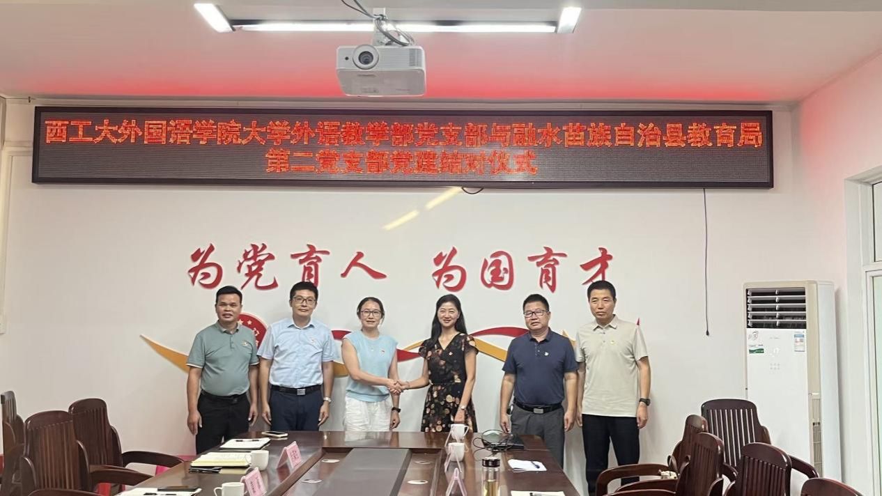 学院党委构建“党支部结对共建+专业师生队伍送教”工作机制,大学外语教学部党支部与融水苗族自治县教育局第二党支部举行了结对联动仪式。王高祖强调,以结对帮扶为纽带,不仅要把先进的外语教学理念、教学方法送到基层课堂,助力提升当地教育教学质量,更要立足教育帮扶实际挖掘党建与业务融合的切入点,把党员先锋模范作用体现在备课指导、课堂示范、教师培训的每一个环节,实现“党建强”与“教育兴”同频共振、互促共进。