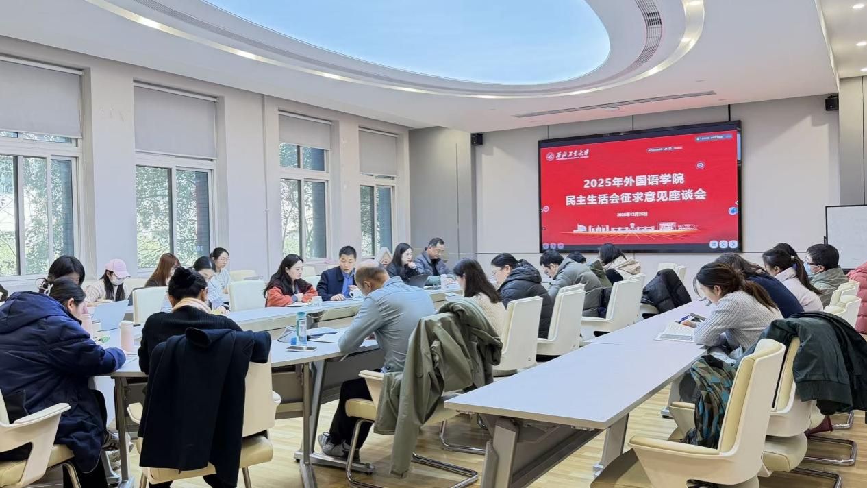 王高祖指出,今年是“十四五”收官之年,大家结合各自工作学习的实践与思考,既对相关工作提出了有益建议,也直言不讳说出了发展难题、指出了发展症结,充分体现了对学校学院工作的支持以及对高质量发展的期盼。他强调,学院将认真梳理分析大家提出的意见建议,并把意见建议纳入民主生活会对照检查内容,形成整改清单,落实责任人,限期整改。在今后的工作中,学院将继续畅通师生意见反馈渠道,与全体师生一道共谋“十五五”发展新篇章,为实现学校“一十百千”目标贡献外语力量。(文/王开薇;审稿/王高祖)